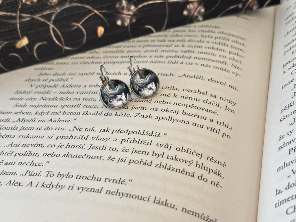 Elegantní náušnice v černo-šedém mramorovém vzoru.
